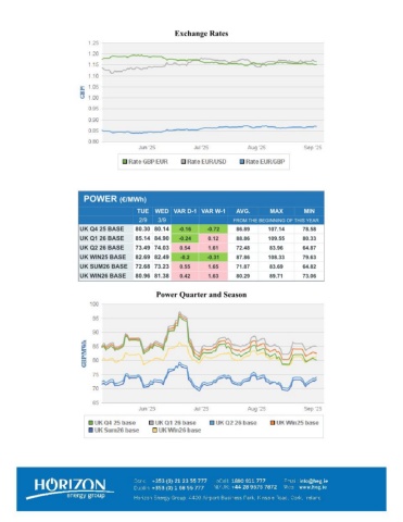 Exchange RatesPOWER (€/MWh) TUEWED VAR D-1 VAR W-1AVG.MAXMIN 2/93/9FROM THE BEGINNING OF THIS YEARUK Q4 25 BASE80.30 80.14-0.16-0.7286.89107.1478.58UK Q1 26 BASE85.14 84.90-0.240.1288.86109.5580.33UK Q2 26 BASE73.49 74.030.541.6172.4883.9664.87UK WIN25 BASE82.69 82.49-0.2-0.3187.86108.3379.63UK SUM26 BASE72.68 73.230.551.6571.8783.6964.82UK WIN26 BASE80.96 81.380.421.6380.2989.7173.06Power Quarter and Season