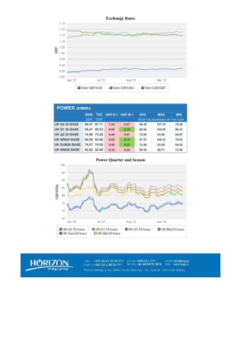 Exchange RatesPOWER (€/MWh) MONTUE VAR D-1 VAR W-1AVG.MAXMIN 22/923/9FROM THE BEGINNING OF THIS YEARUK Q4 25 BASE80.47 81.711.240.5186.49107.1478.58UK Q1 26 BASE85.47 85.530.06-0.7688.66109.5580.33UK Q2 26 BASE74.80 75.280.480.0172.6983.9664.87UK WIN25 BASE82.95 83.600.65-0.1187.57108.3379.63UK SUM26 BASE74.07 74.560.49-0.0172.0683.6964.82UK WIN26 BASE82.62 82.940.320.3680.4689.7173.06Power Quarter and Season