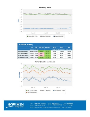 Exchange RatesPOWER (€/MWh) THUFRIVAR D-1 VAR W-1AVG.MAXMIN 30/10 31/10FROM THE BEGINNING OF THIS YEARUK Q1 26 BASE83.69 83.47-0.22-0.5588.09109.5580.33UK Q2 26 BASE70.73 70.750.02-0.7772.6483.9664.87UK SUM26 BASE70.48 70.530.05-0.7772.0483.6964.82UK WIN26 BASE79.65 79.33-0.32-0.2480.4889.7173.06Power Quarter and Season