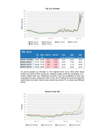 BRENT USD/BBL 92.69 98.96 6.27 21.22 69.27 98.96 59.96