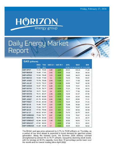The British spot gas price advanced by 4.7% to 76.80 p/therm on Thursday, as